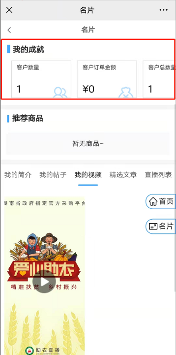 6,我的客户:只有【我的成就】选择显示,这里的开关才有效;选择显示,则名片—我的成就可以看到客户相关数据
